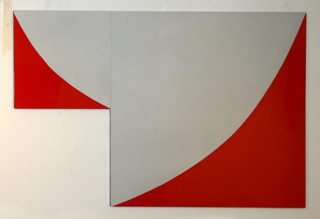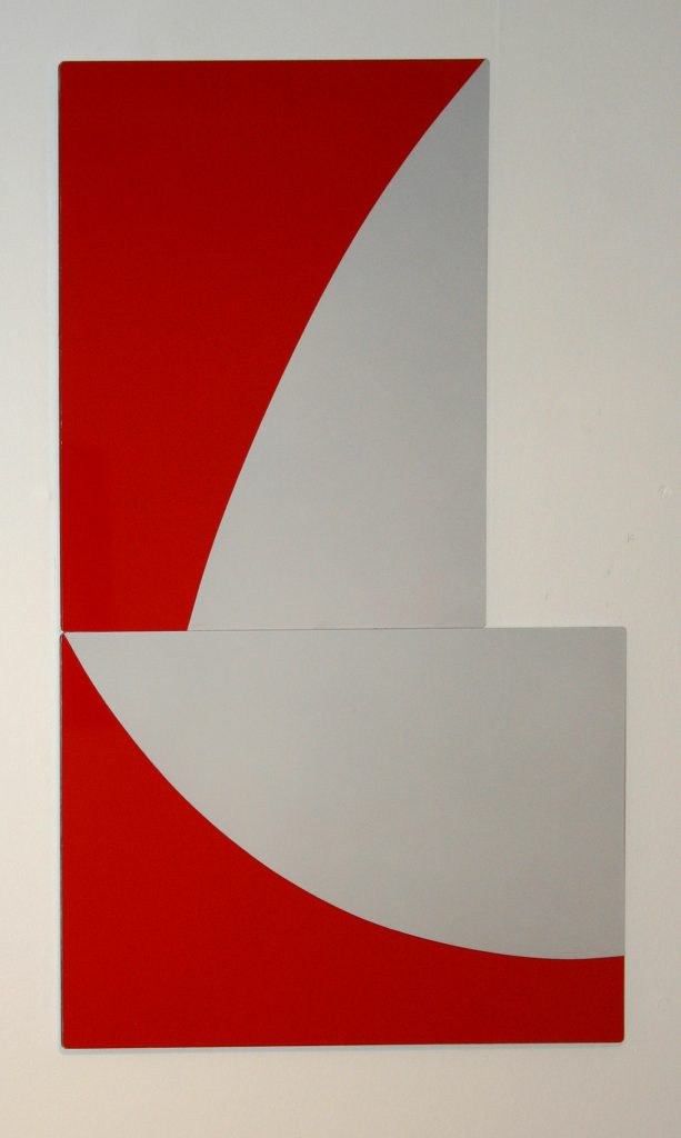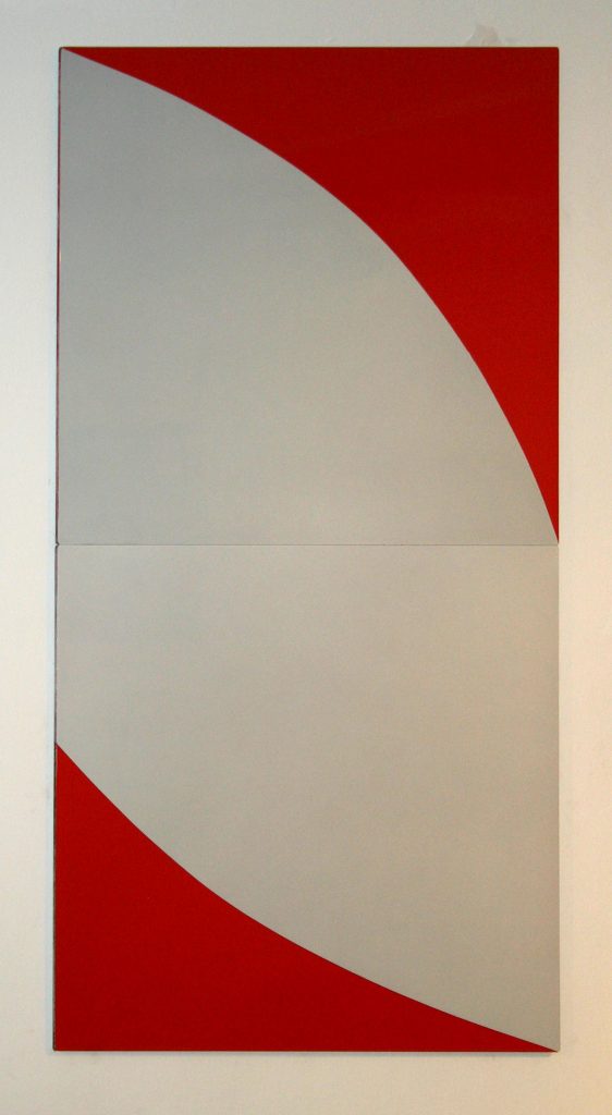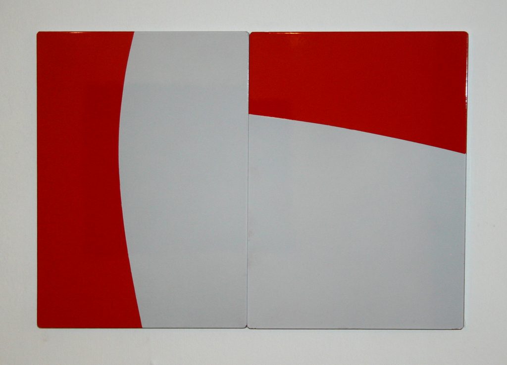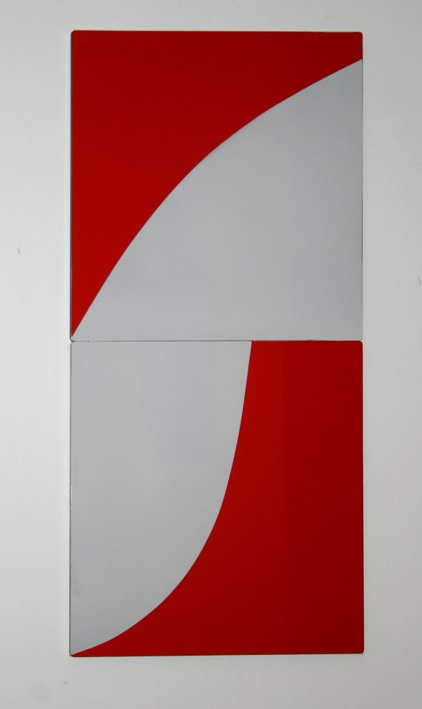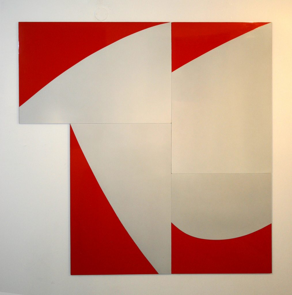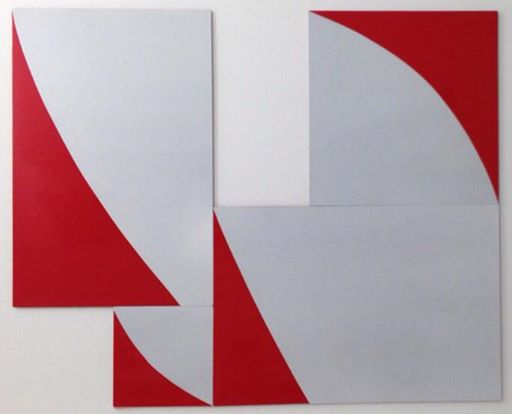 One aspect of the group works is the physical re-arrangement of the painted panels – shifted around rotated, linked and spaced apart. There is a play between each panel as a distinct element and the dialogue between parts within the group. The elements of flux and play in the multi-panel paintings have links to the shifting components in the traditional game of the 15-square puzzle and also to the repetitive patterns of decorative tiles
